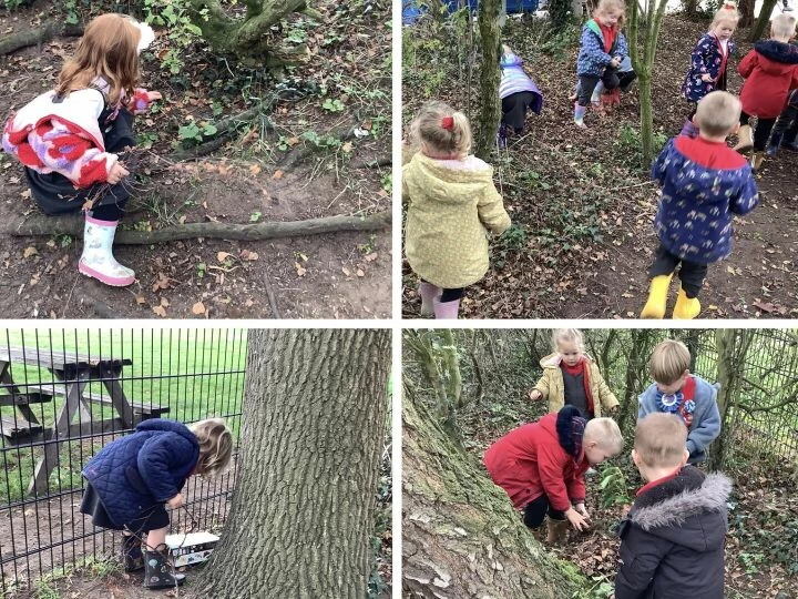 This week, we began our Welly Time with a lovely story called The Hedgehog Who Needed a Rest, all about a little hedgehog noticing the signs of autumn and searching for a cosy place to rest. After the story, we talked about what the hedgehog might need to feel safe and warm, and the children had some brilliant ideas! We decided to help by building our own hedgehog houses around the school grounds. The children worked together to find four perfect spots, then explored the forest area to collect autumnal treasures like leaves, twigs, and moss to make the houses extra snug. Everyone had so much fun being creative and caring for nature!