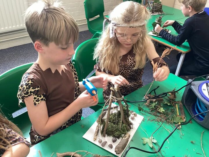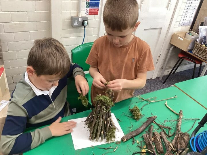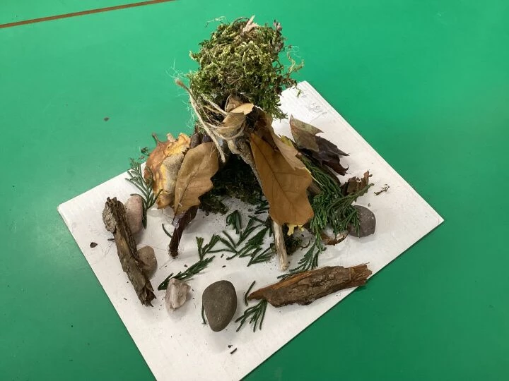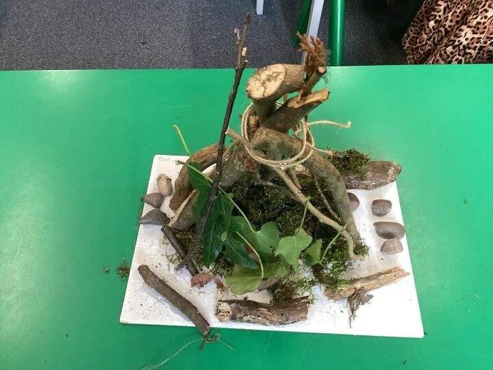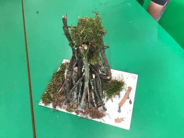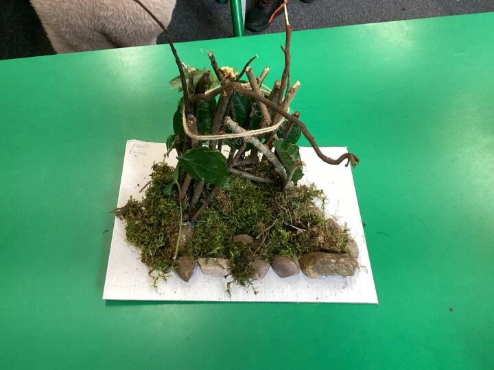 We have collected natural resources like early humans had to and created some real life miniature shelters that people would have lived in, thousands of years ago.
