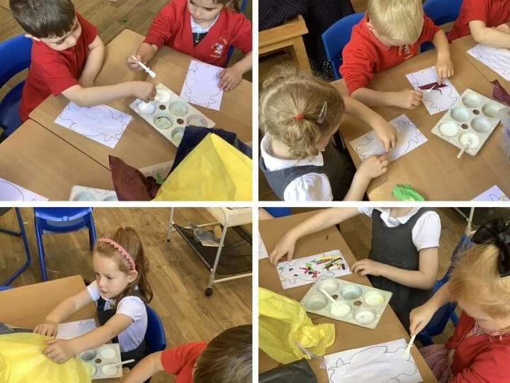 This week in Base 1, we've been having lots of creative fun! In Drawing Club, we explored the story Not Now, Bernard! by David McKee and used our imagination to design our own monsters. We learned how to use glue spreaders with PVA glue and experimented with different ways to manipulate tissue paper to create interesting effects. We also worked on our fine motor skills, practising number formation and developing our cutting skills using scissors. For Mystery Reader this week, we had a wonderful story from Freya's mummy, Mrs Savage. Freya, as well as the other boys and girls, were so excited and thoroughly enjoyed listening to a new story.