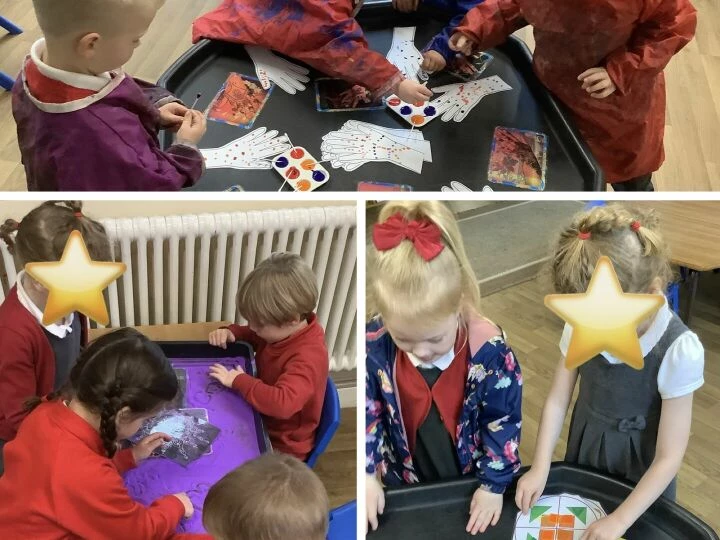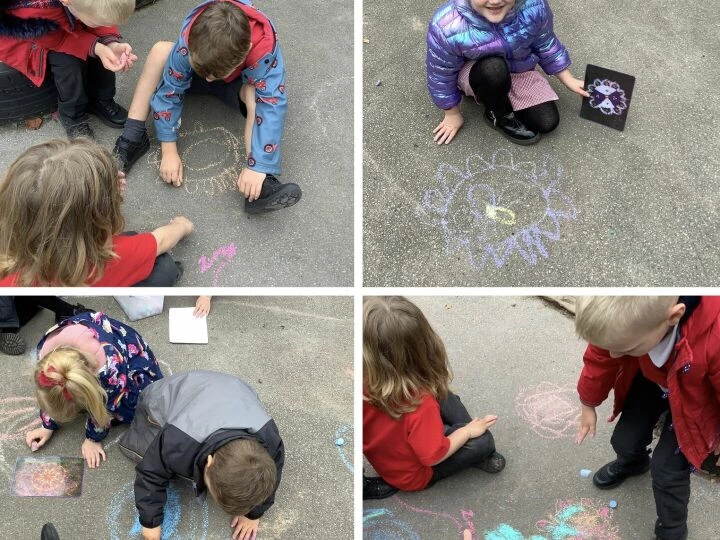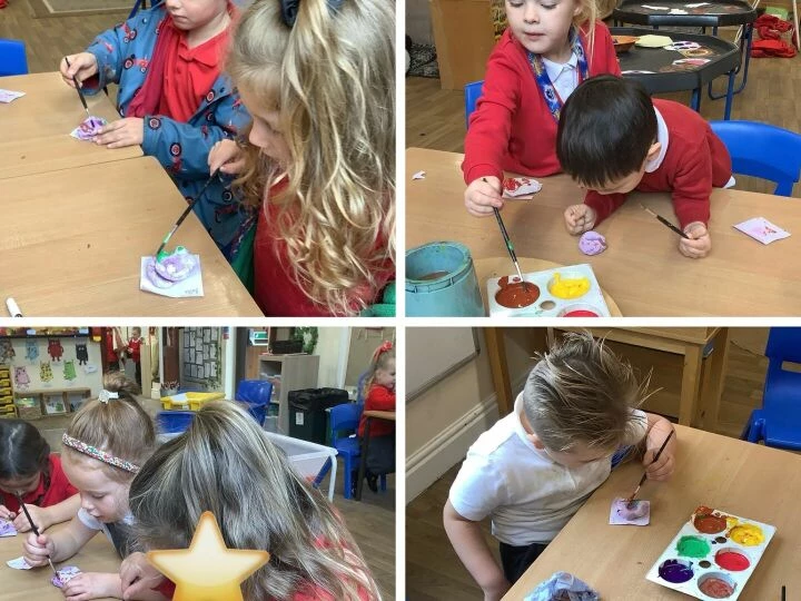 Children in Base 1 have had a wonderful time celebrating Diwali this week, the festival of light. In Drawing Club, we read the story ofRama and Sita and learned exciting new vocabulary such as chariot, warrior, battle, and mighty. The children loved using their imagination to build their own chariots outside, exploring different materials they might need. They also got creative making their own Diwali lamps from salt dough, working together to mix the dough, shape their lamps, and carefully paint them in bright, festive colours. We explored beautiful Rangoli patterns too, linking back to our pattern learning from last week. In Drawing Club, the children showed fantastic progress as they wrote their special 'magic code' to activate their drawings, using the new phonemes and digraphs with confidence. It's been a joyful week full of creativity, teamwork, and exciting new learning!