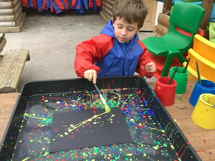 To celebrate bonfire night, we have had a very colourful week in Base 1. We've explored primary colours and how we can mix two colours together to make new colours! We then looked at the artist Jackson Pollock and used his famous 'drip' technique to create our own firework skies!