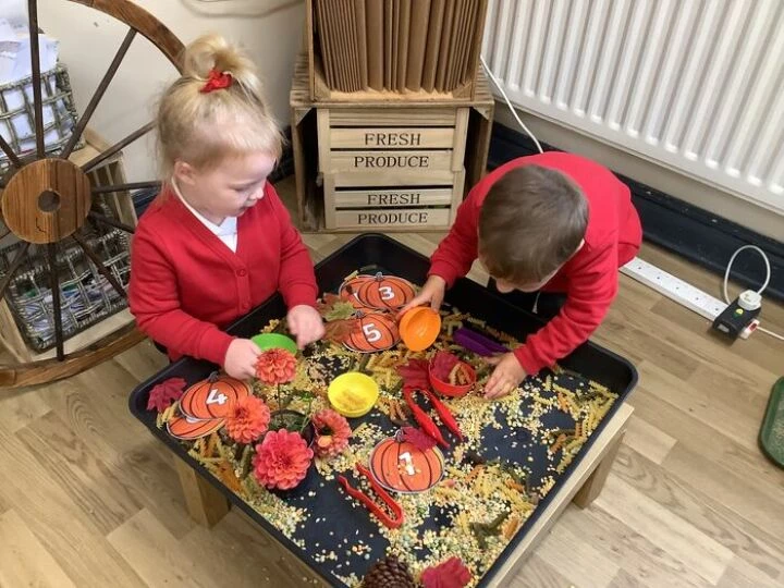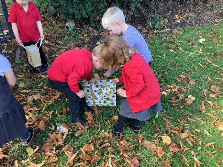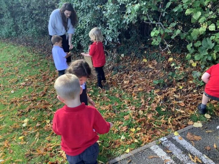 On Monday, we explored some treasures that Miss Gregory had found on a walk. We were able to name most of the objects, "conker" "acorn" "black berry" "leaf" and "pine cone" – wow! We learned that these treasures were signs of autumn. We shared the information book 'Autumn' to find out a little more. To ignite our learning, we went on an autumn walk to find more treasures. Autumn is definitely on its way! We have also enjoyed craft activities and have sang songs to support our learning on the season autumn.